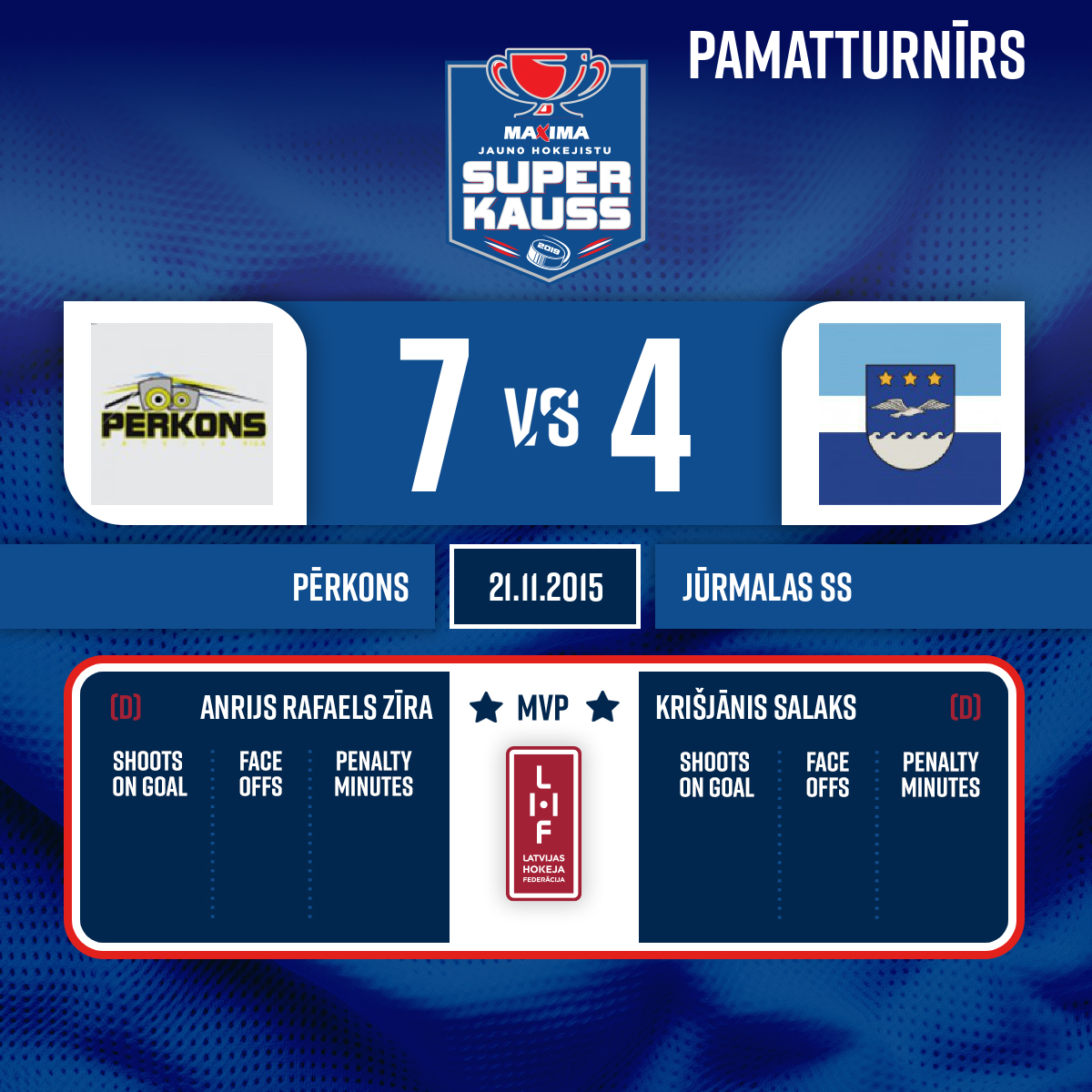 - 43:46P3Powerplay goal (+2)#74 Haralds FEDOSEJEVSAssists: #29 Inokentijs HUDJAKOVS, #21 Toms ĀDMĪDIŅŠ