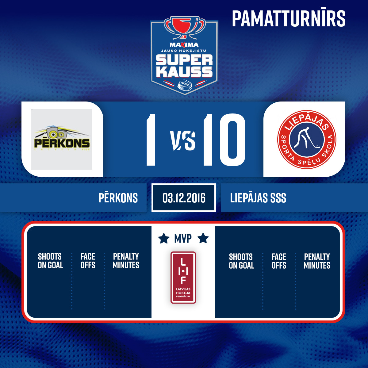 - 31:34P3Goal#12 Raivo LAPIŅŠAssists: #6 Rihards RŪSĪTIS, #13 Kristers MIĶELSONS