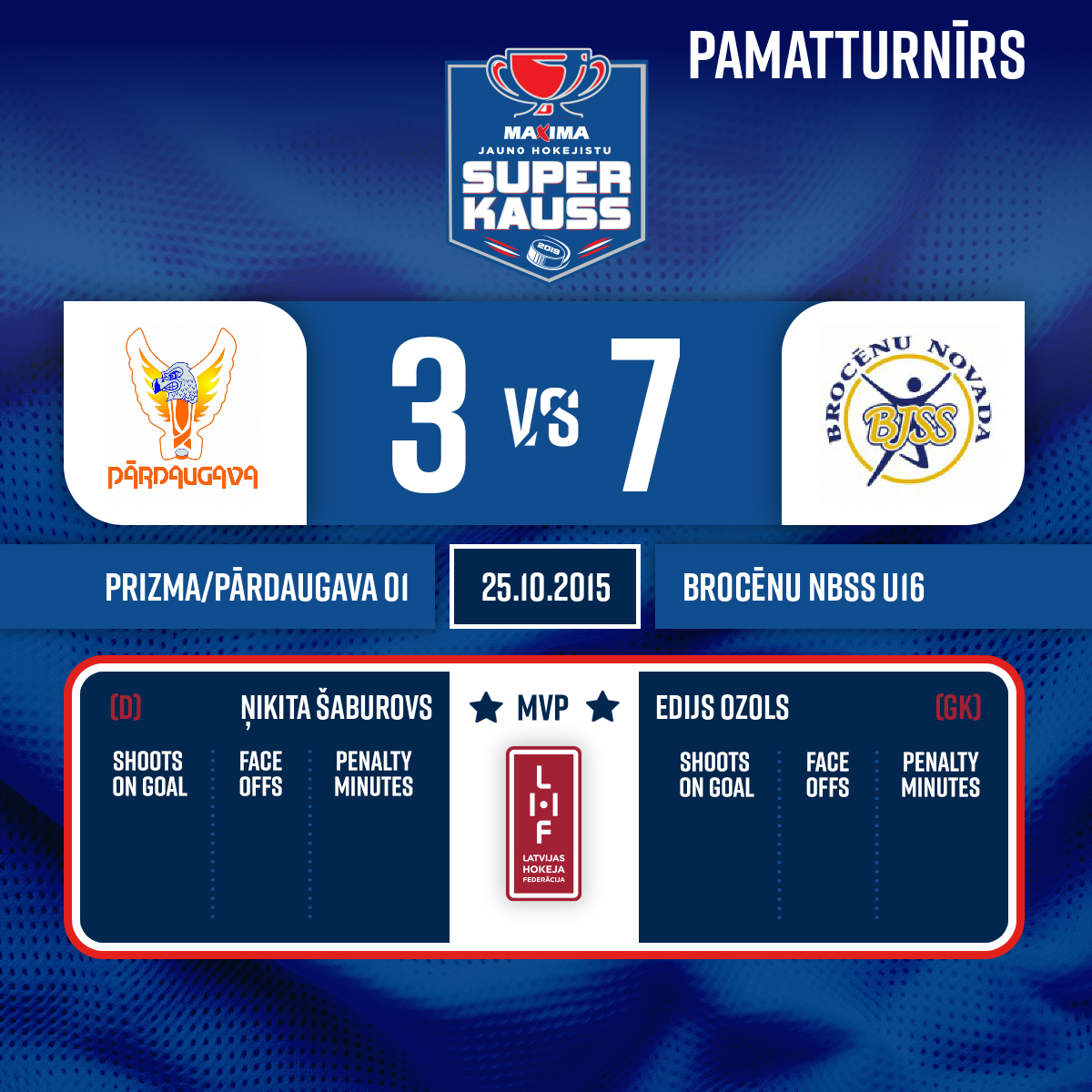 - 36:15P2Goal#82 Ņikita ŠABUROVSAssists: #18 Dmitrijs BABURGS, #43 Miroslavs ĻEONOVS