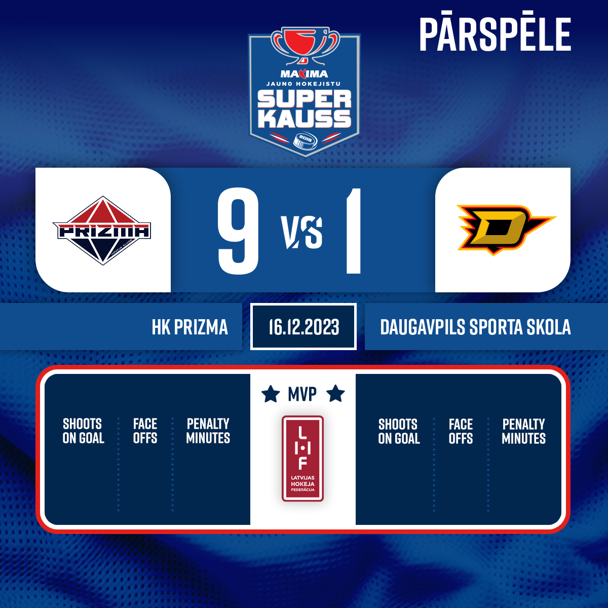 - 37:57P3Goal#14 Artjoms JEPIŠOVSAssists: #25 Māris JUKĀMS, #17 Gavriils SAPERINS