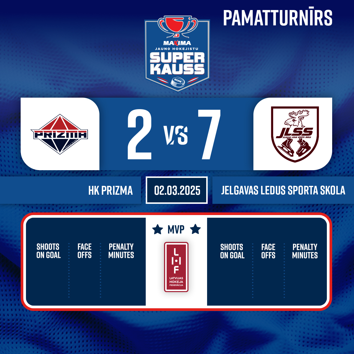 - 13:51P1Goal#32 Markuss Roberts POGULISAssists: #9 Toms BARTUŠEVICS, #29 Emīls LEIMANIS