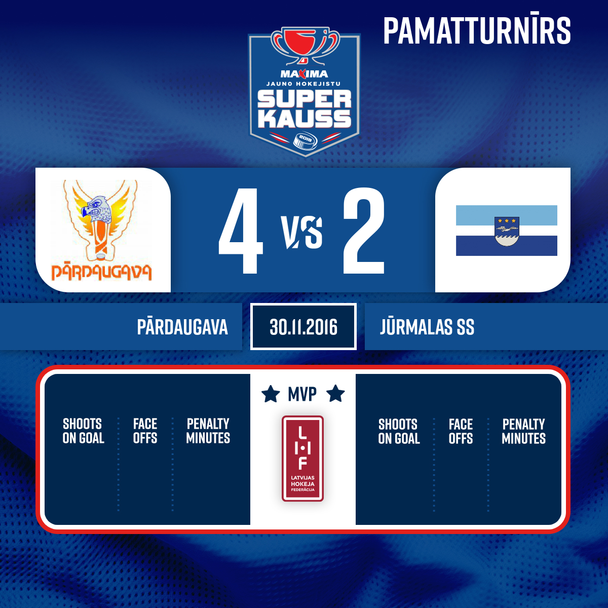 - 43:00P3Powerplay goal#21 Daniil IVANOVSAssists: #27 Ričards HALILOVS, #13 Jēkabs SILIŅŠ