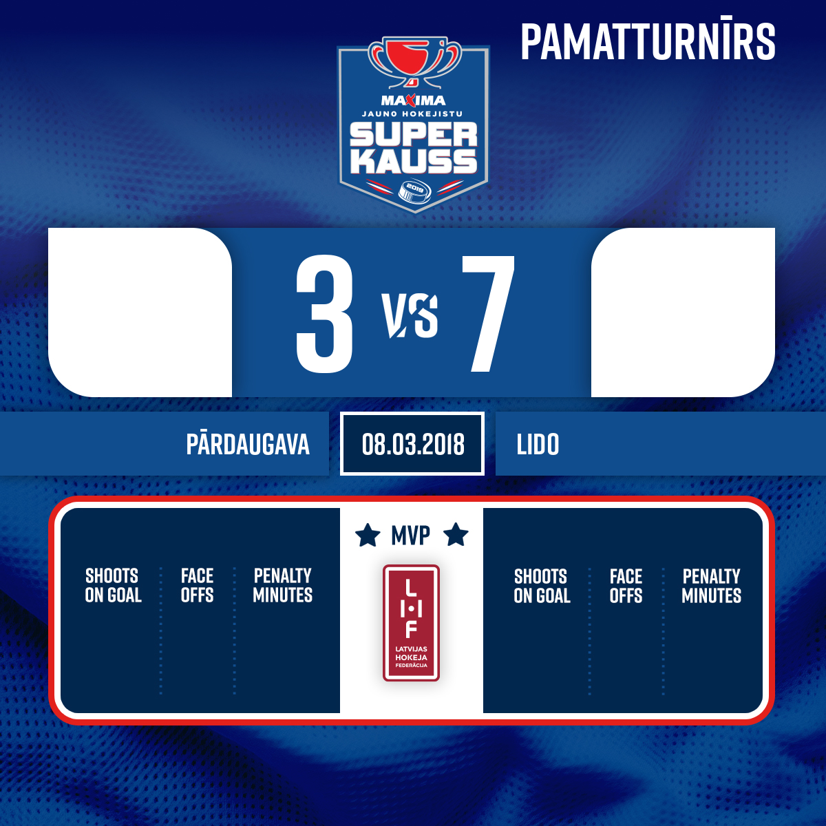 - 60:00P3Goalkeeper out#44 Kristiāns DAŅILOVS