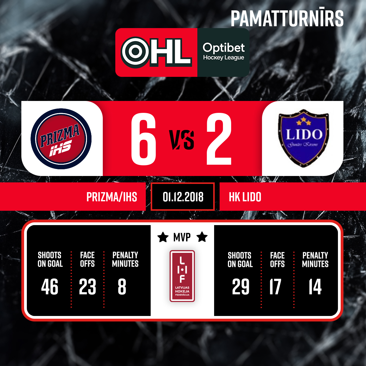 - 60:00P3Spēles labākie spēlētāji: HK Prizma #1 Auziņš Jānis HK Lido #45 Ivanov Nikita