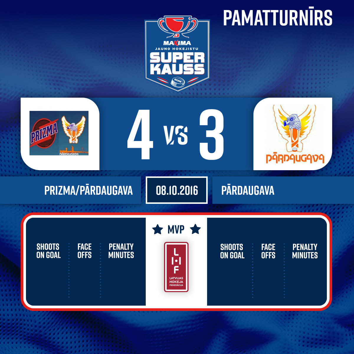 - 41:49P3Goal#12 Kārlis TILTIŅŠAssists: #13 Toms STRAUTNIEKS, #14 Ričards STĀMURS