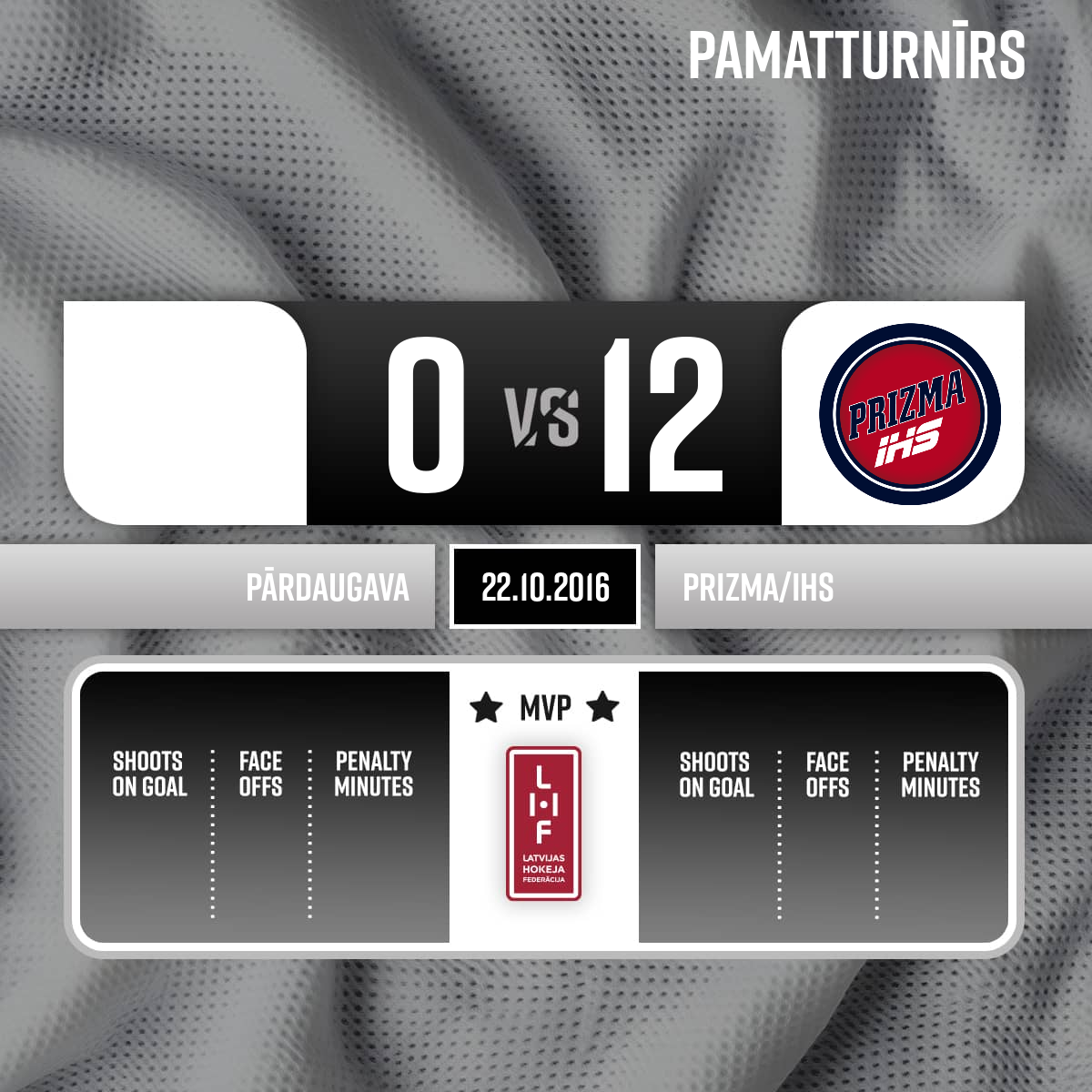 - 60:00P3Labākie spēlētāji: Pārdaugava - Kaspars Dzierkals; HK Prizma - Kārlis Zakrevskis