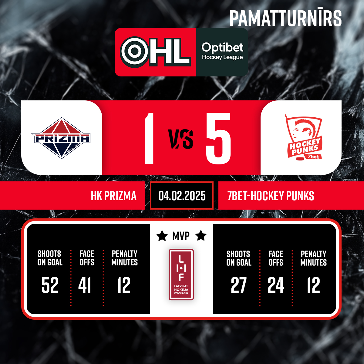 - 60:00P3Labākie spēlētāji: 7BET Hockey Punk – Artur Pavliukov #28 Prizma – Valters Apfelbaums #77