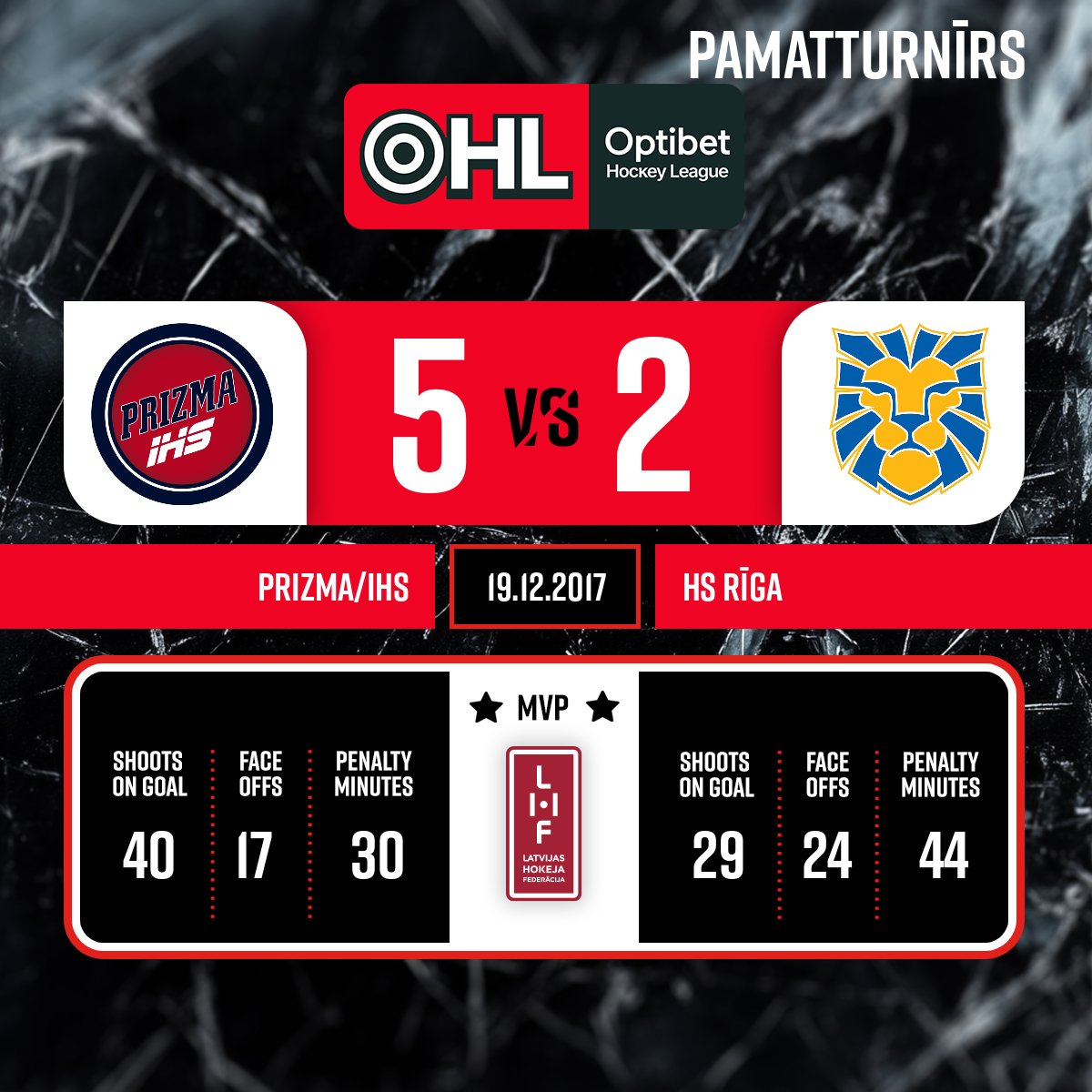 - 60:00P3Spēles labākie spēlētāji: HK Prizma - Kristaps Riekstiņš #22 HS Rīga - Artjoms Pankevičs #17