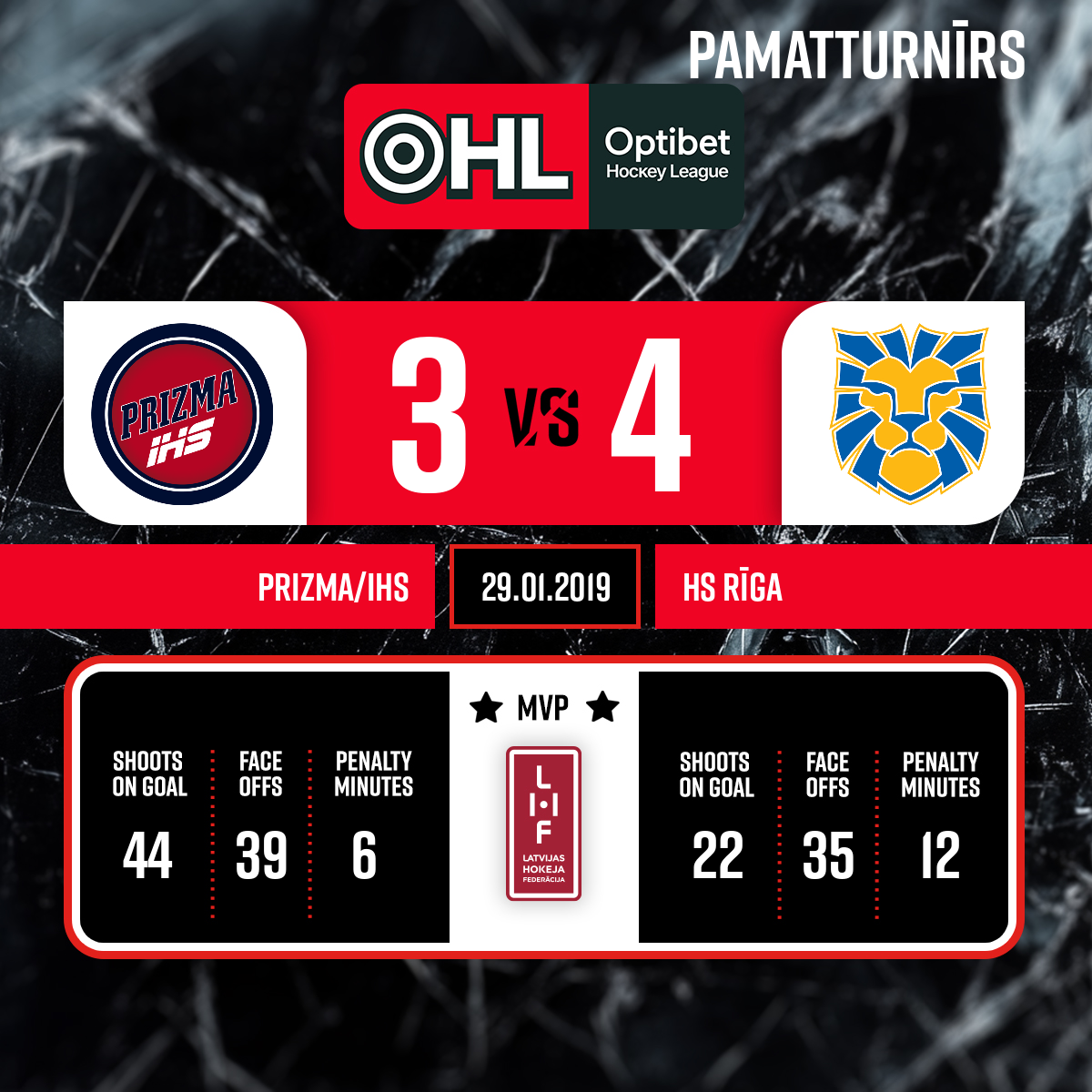 - 60:00P3Labākie spēlētāji: HK Prizma - Niklāvs Balgalvis #55; HS Rīga - Artūrs Šilovs #31