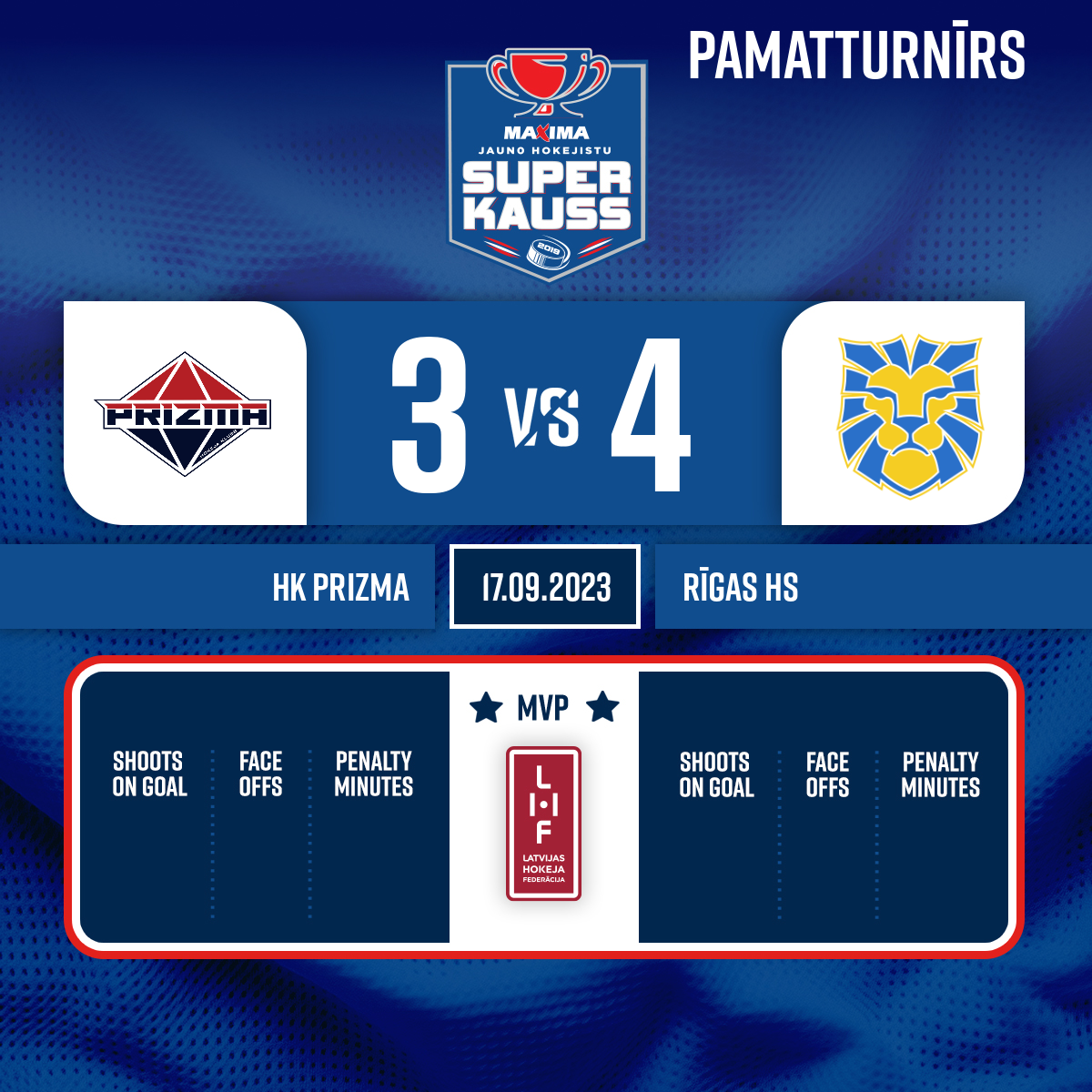 - 53:27P3Goal#14 Armands APSĪTISAssist: #8 Daniils RUSECKIS