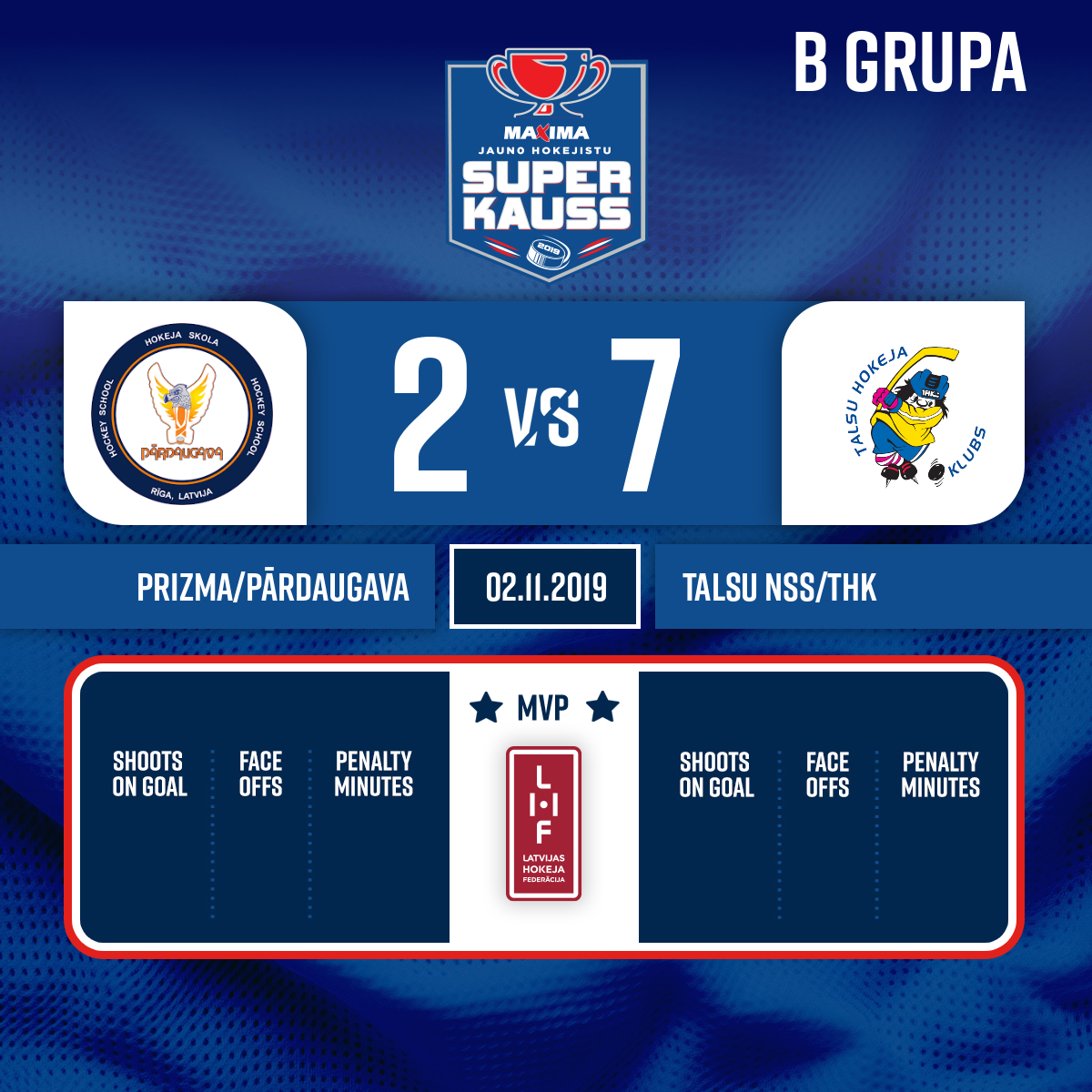 - 30:10P3Powerplay goal#18 Rihards VĒRDIŅŠAssist: #8 Aksels ĀBOLIŅŠ+1