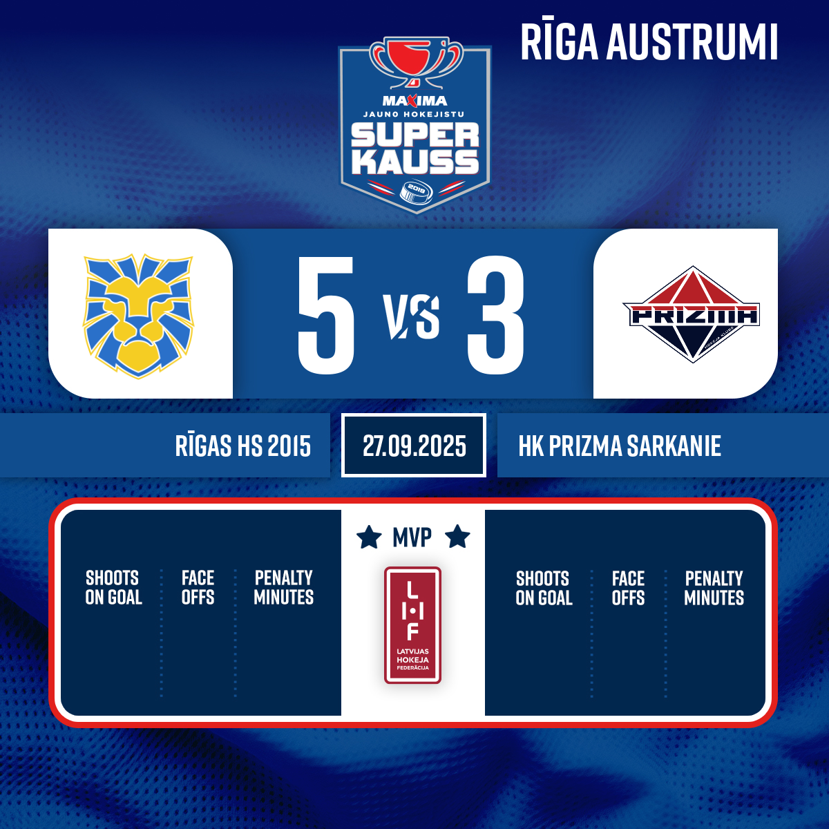 - 17:07P2Goal#28 Georgijs ČEŠEIKOAssist: #9 Edvards BALTAISKALNS
