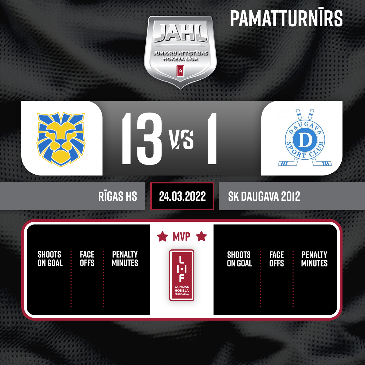 - 24:12P2Goal#48 Raivis STRAZDIŅŠAssist: #51 Ēriks MATEIKO