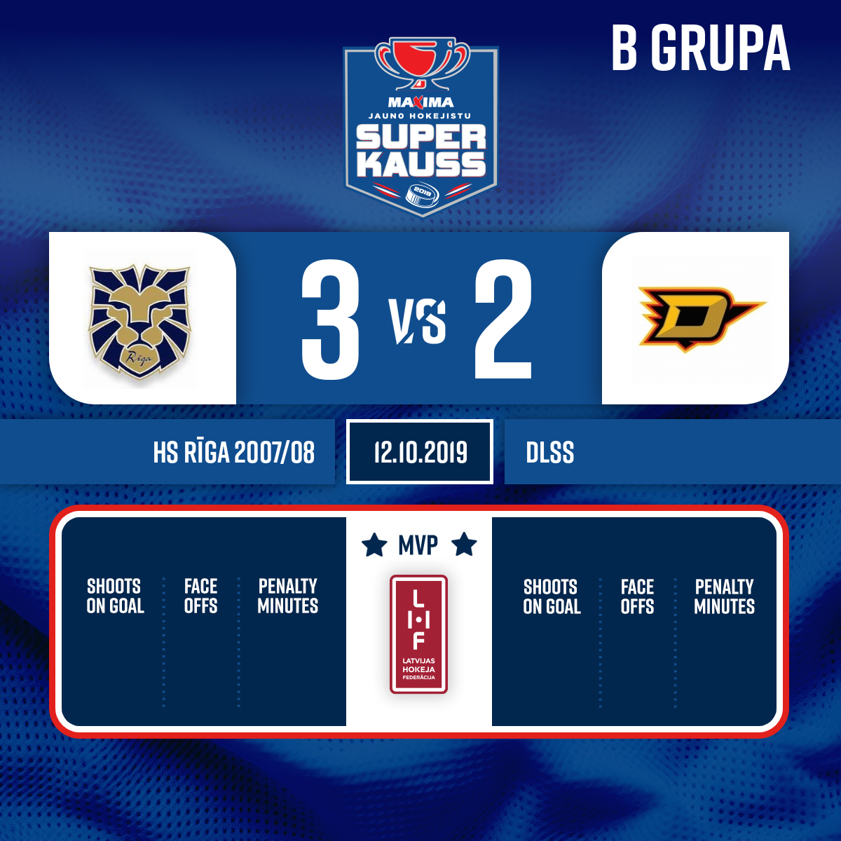 Goal#9 Jānis NEILANDSAssist: #4 Matīss LEIMANIS - 00:00P1Spēles tiesneši: Galvenie tiesneši - E.Druseiks, A.Ozoliņš