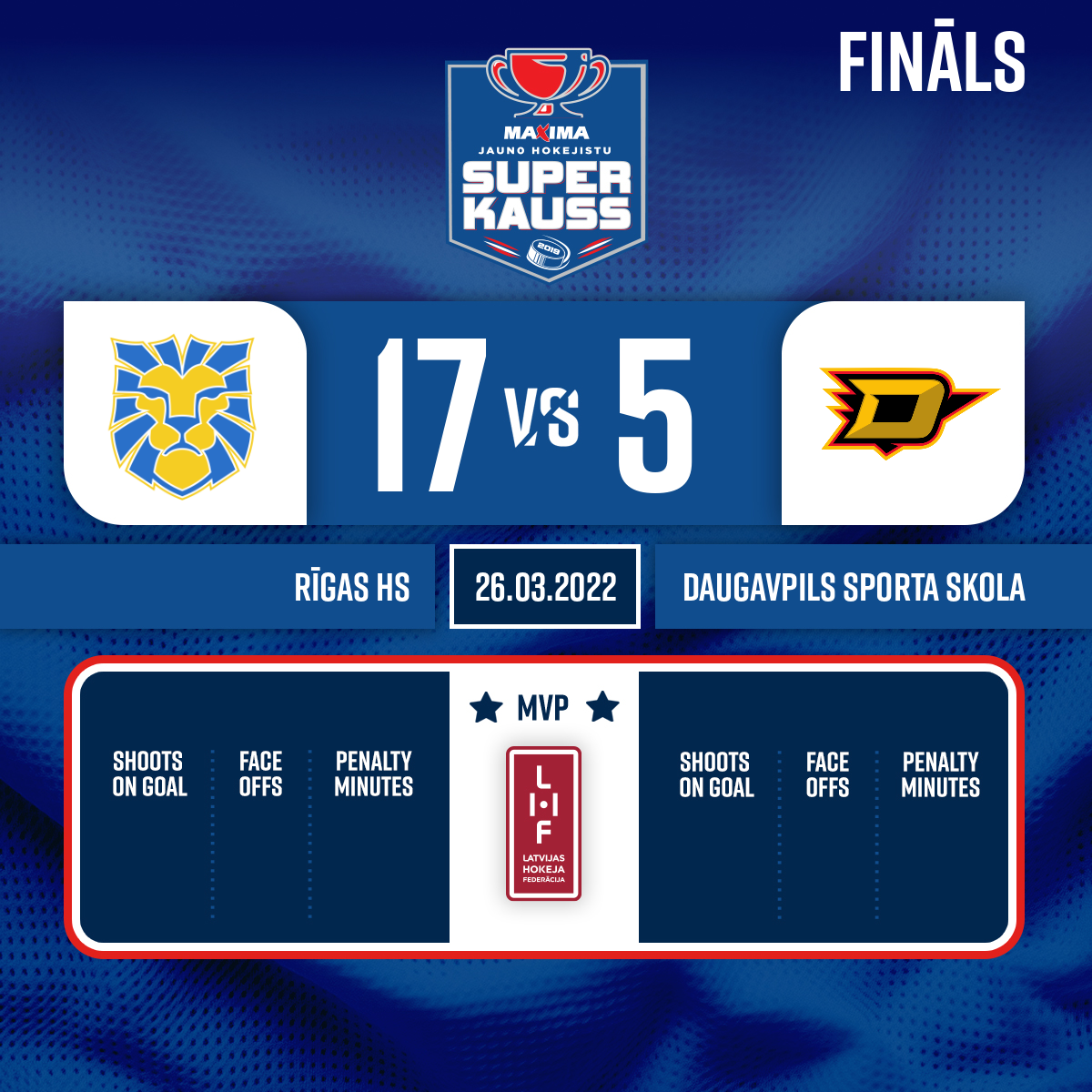 - 22:49P2Goal#17 Natans SAMUILOVSAssist: #23 Gļebs DEREVJANKO