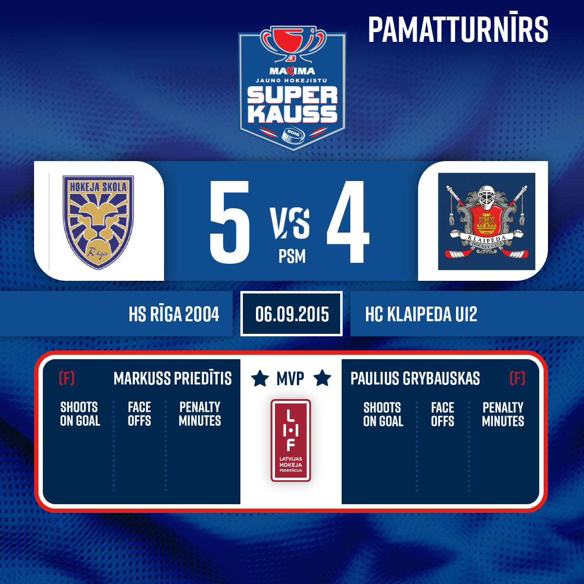 - 41:45P3Goal#30 Viesturs MARTINOVSAssists: #11 Markuss PRIEDĪTIS, #99 Leo CABULIS