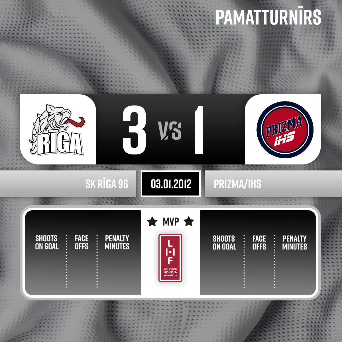 - 46:20P3Shorthanded goal#10 Rolands DIETLAVSAssist: #16 Sergejs PISKUNOVS