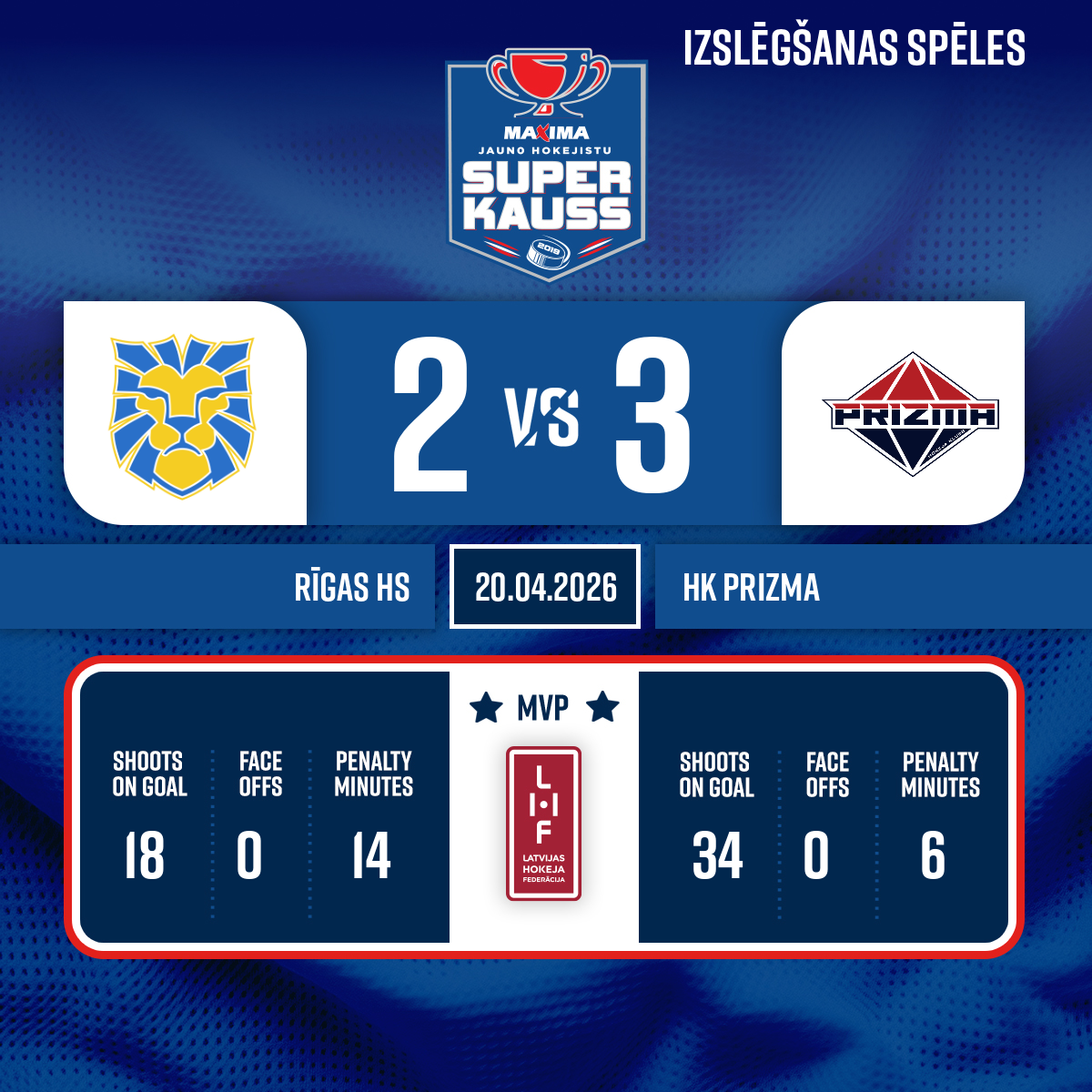 Powerplay goal#9 Haralds GABRĀNSAssists: #29 Hordii KURASH, #23 Miks KLEMPNERS - 40:00 Start of the 3rd period