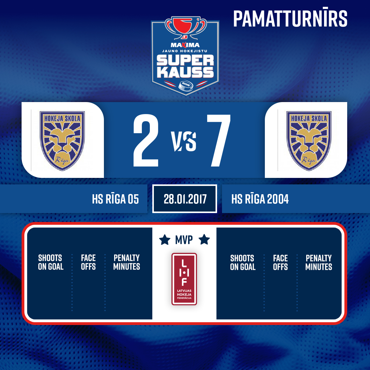 - 03:44P1Goal#7 Aleks Elians ĻEONOVSAssists: #28 Markuss STREIKIŠS, #14 Danila ŠIRJAJEVS