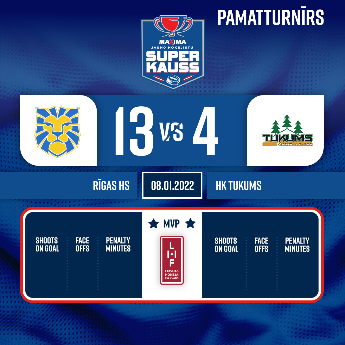 - 47:36P3Powerplay goal#49 Rauls LADUSĀNSAssists: #15 Vladislavs GONTARS, #44 Kristers DONIŅŠVairākumā +1