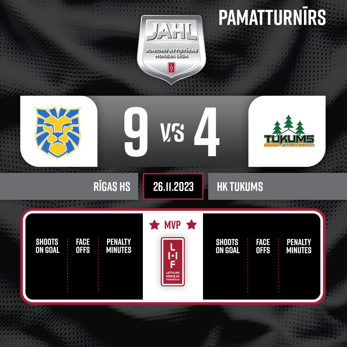 - 54:06P3Goal#49 Gustavs SPĪGULISAssists: #28 Rauls KAPURA, #58 Rolands RĀMUTIS