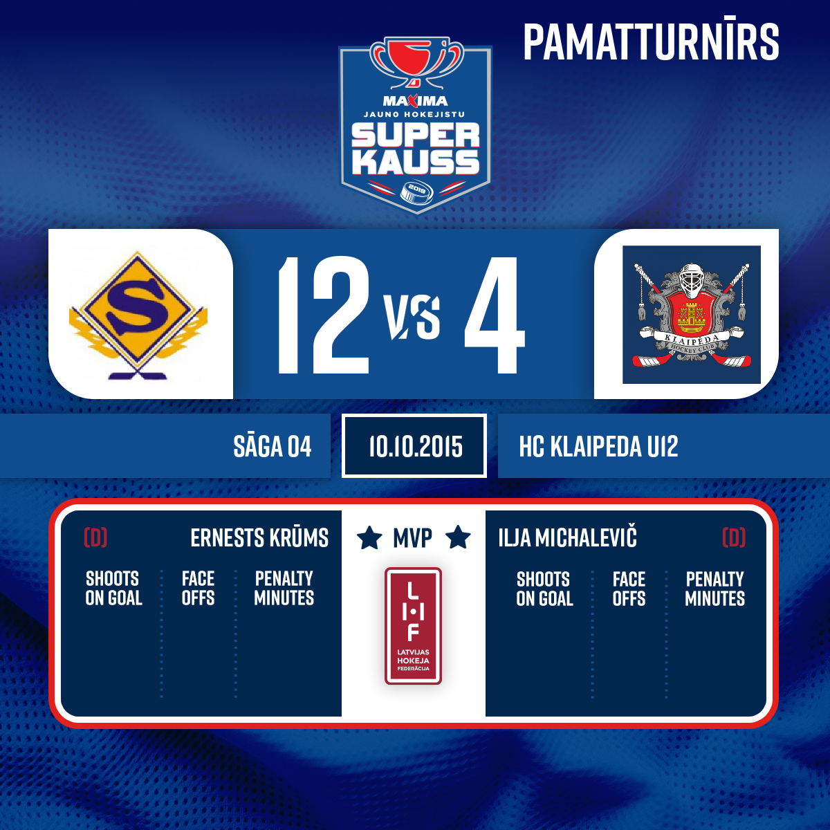 - 20:20P2Goal#8 Emīls Luka TOMANSAssists: #9 Raivis STRAZDIŅŠ, #24 Renarts BĒRZIŅŠ