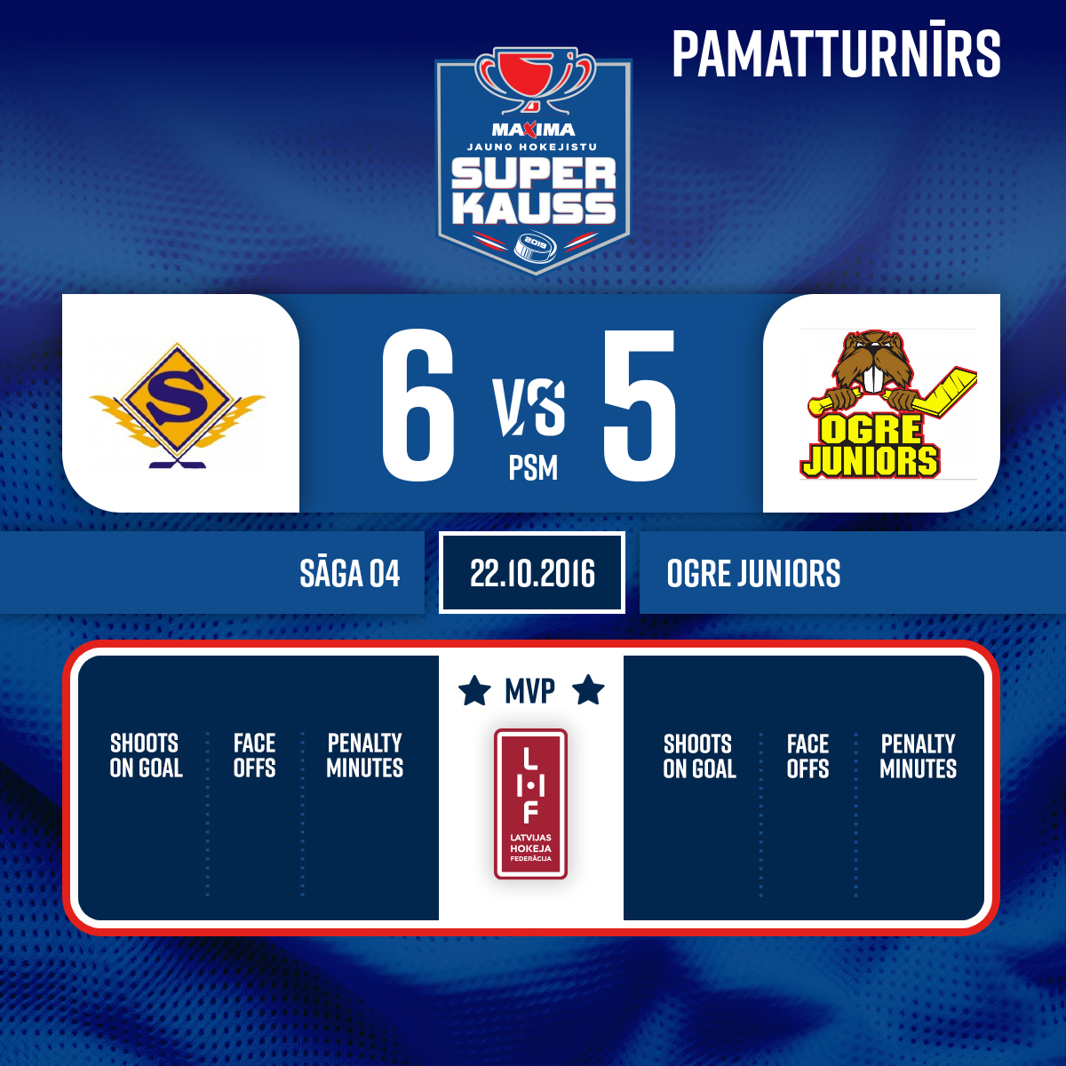 - 10:22P1Goal#9 Raivis STRAZDIŅŠAssists: #23 Rodžers BUKARTS, #32 Ričards KRŪMIŅŠ