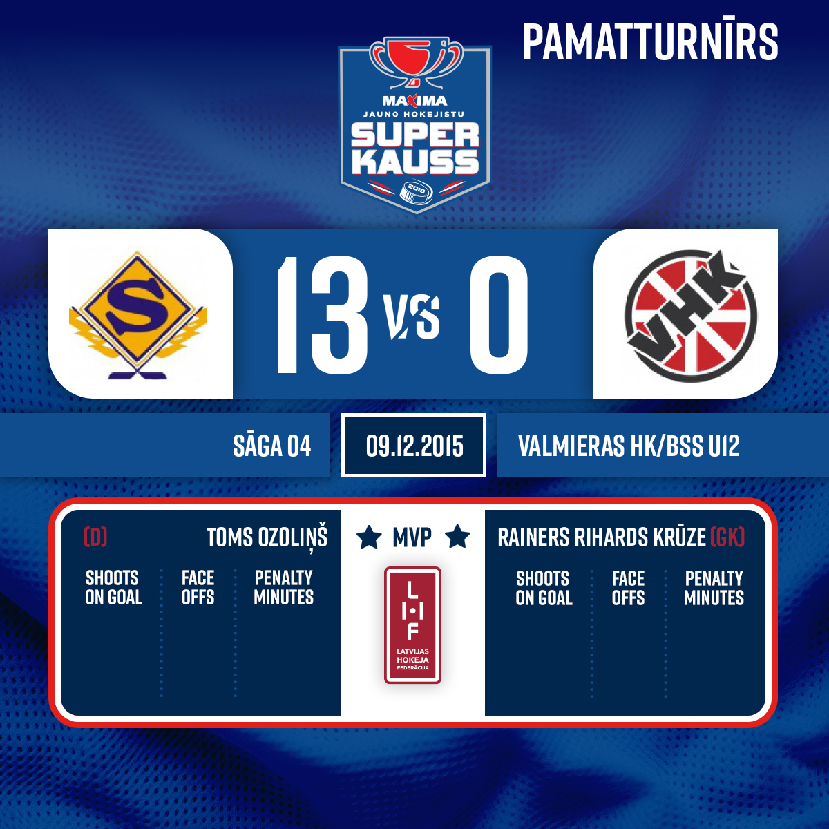 Assists: #21 Valts VECVANAGS#8 Emīls Luka TOMANS3:0PP1, 15:50- Periods 1