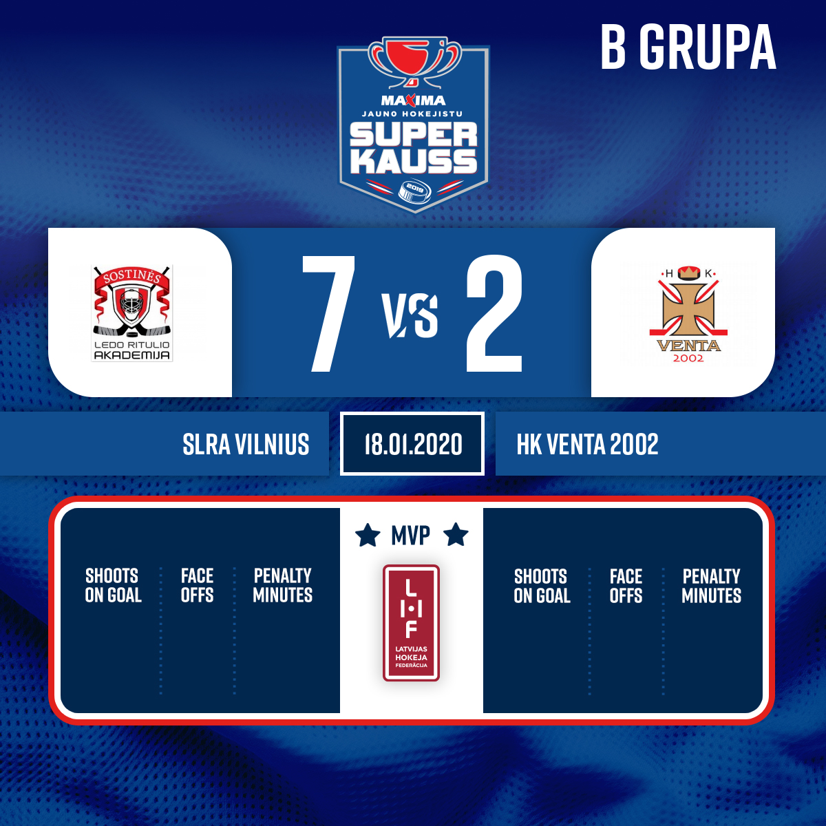- 02:12P1Powerplay goal#40 Laurynas STIRNAAssist: #7 Dominykas KATULIS