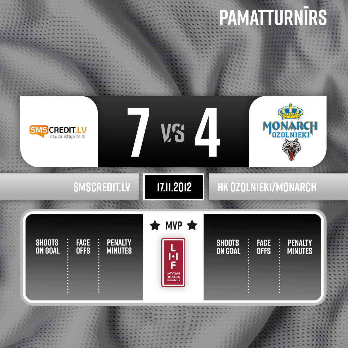 - 19:07P1Powerplay goal#18 Vladimirs MAMONOVSAssists: #12 Toms BLUKS, #33 Valerijs FIĻIMONOVS