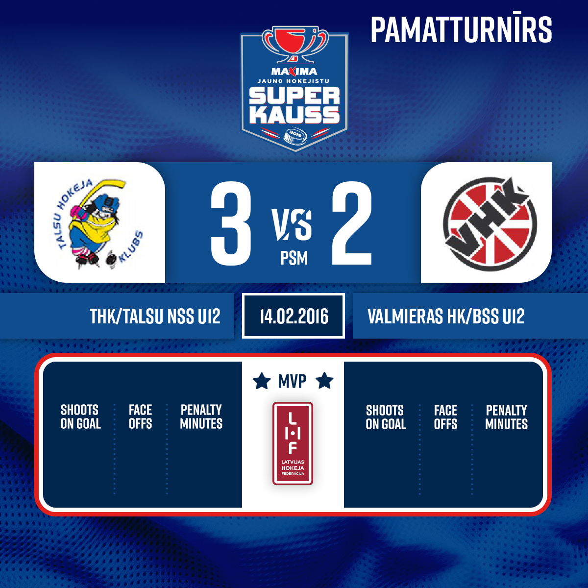- 45:00P3Goalkeeper out#52 Mārtiņš DRĪKSNE