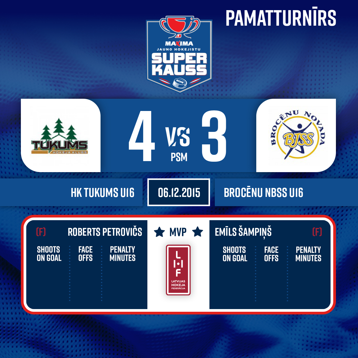 - 57:52P3Powerplay goal#71 Voldemārs MASLOVSKISAssists: #16 Jorens KVĒLE KVĀLS, #11 Edvards BALODIS