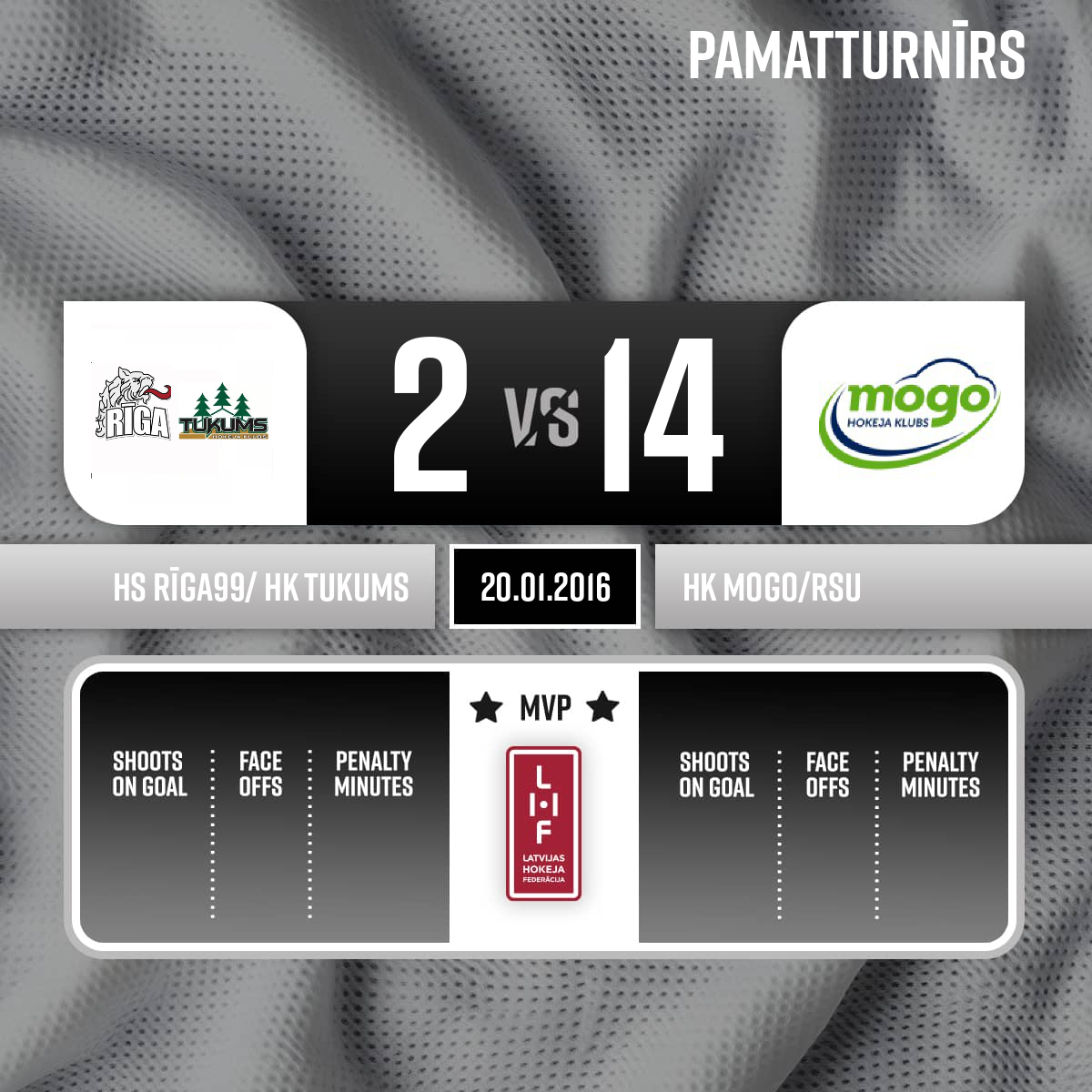 - 60:00P3Labākie spēlētāji: HS Rīga99/ HK Tukums #10 - Emīls Ģēģeris HK Mogo #10 - Sergejs Durdins