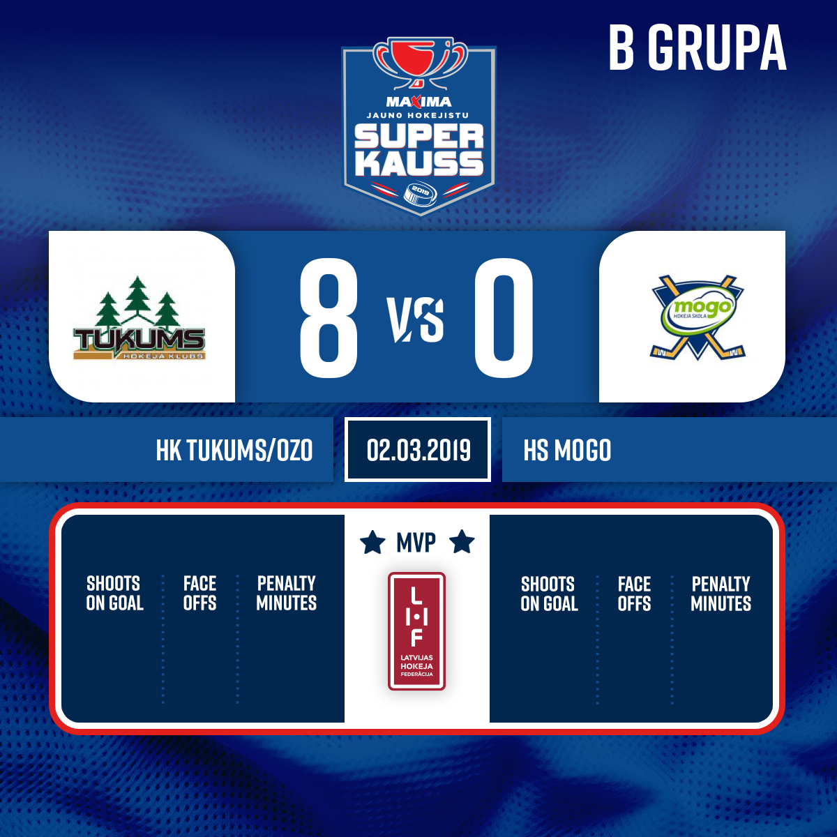 - 41:00P3Goal#9 Eduards Rojs BUČIŅŠAssist: #5 Pēteris Arvīds CELMIŅŠ LĪCIS