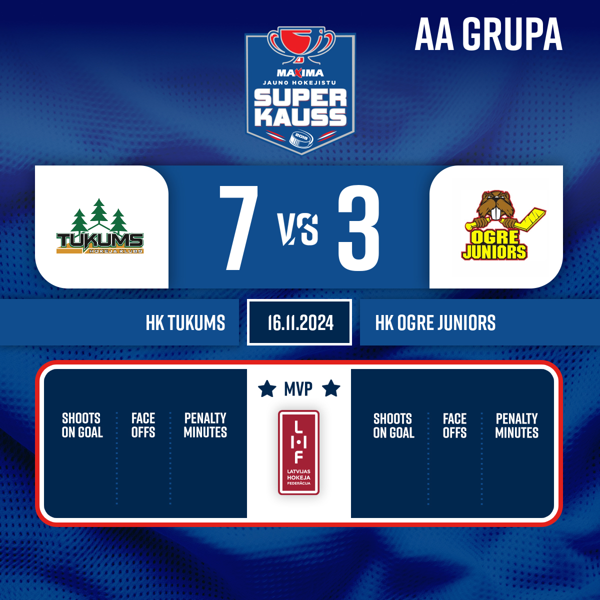 - 23:51P2Goal#28 Gustavs BURNEVICSAssists: #35 Roberts KRONBERGS, #5 Edvards BĒRZIŅŠ