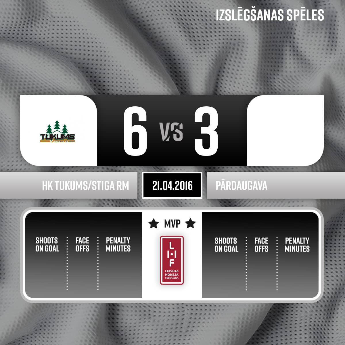 - 60:00P3Spēle noslēgusies ar rezultātu 6:3, līdz ar to sērijā rezultāts 1:1. Izšķirošā spēle sestdien Arenā Rīga.
