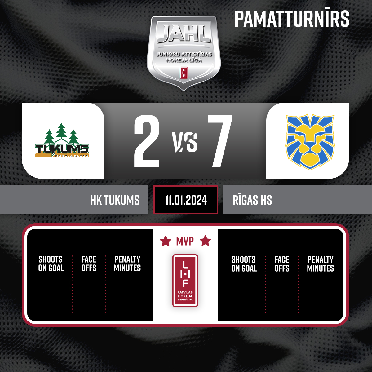 - 29:45P2Goal#22 Raiens MELNIS DZEGUZEAssists: #98 Rihards MERTENS, #15 Gusts JEGOROVS