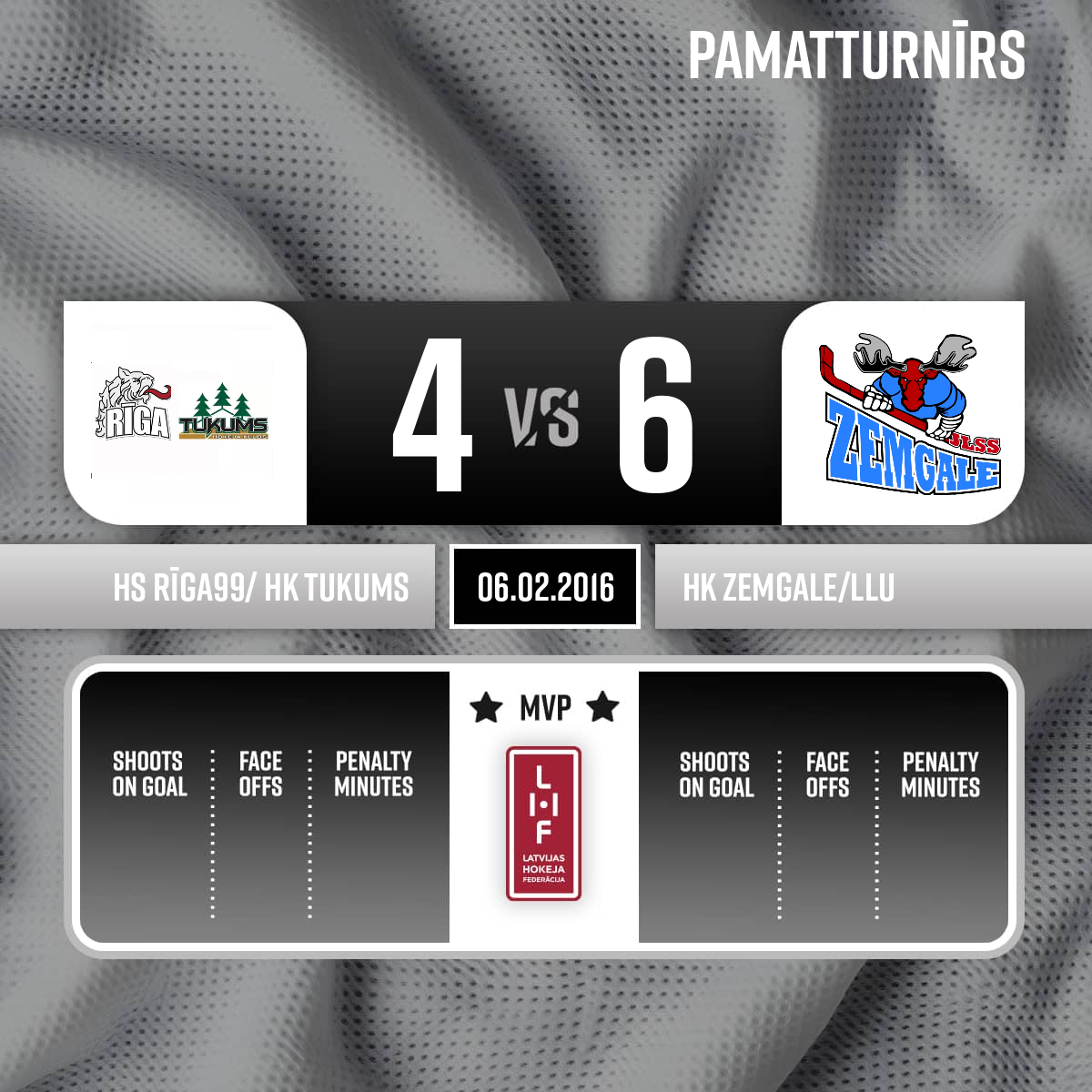 - 60:00P3Labākie spēlētāji: HS Rīga 99 /HK Tukums - #12 Daniels Bērziņš; Zemgale - #44 Kristaps Millers