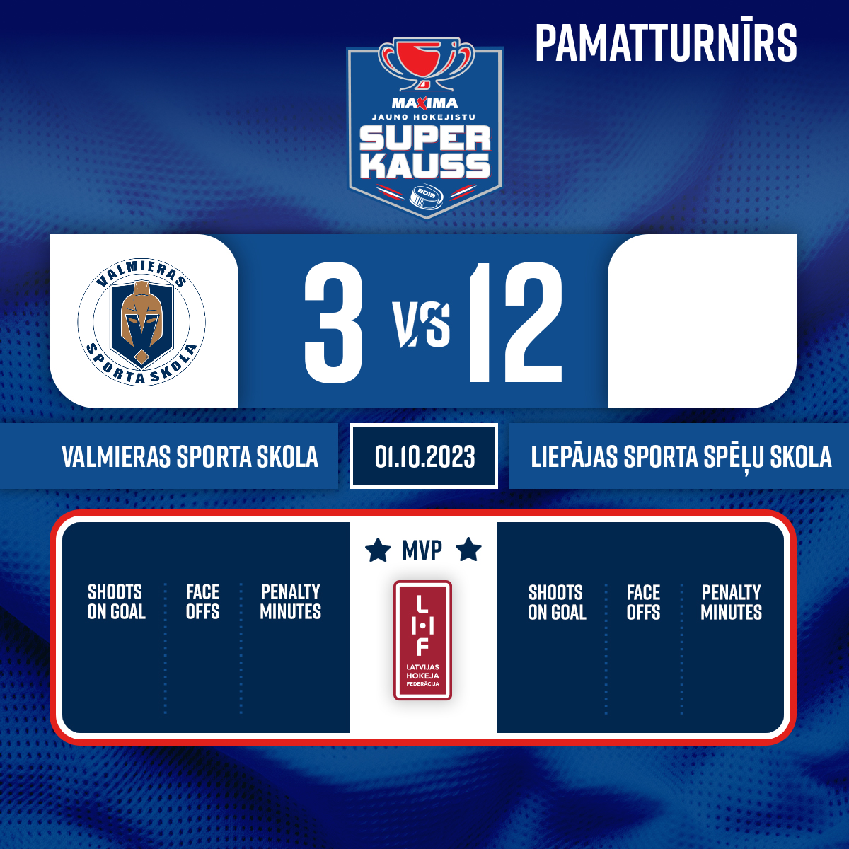 Assist: #29 Mark BAŠKIROV1:2PK1, 11:07- #8 Kyrylo SKACHKOVAssists: #10 Aleksis FRĒLIHS#32 Kaspars LAPUĶIS0:210:34
