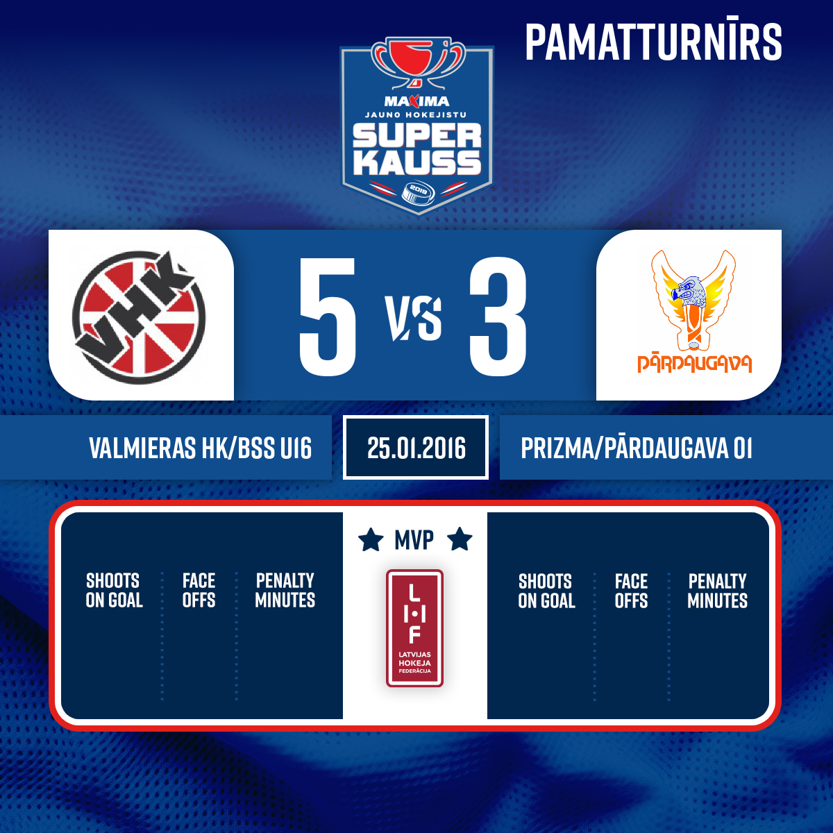 - 60:00P3Labākie spēlētāji: Valmiera HK/BSS - #17 Artūrs Krumholcs Prizma/Pārdaugava 01 - #16 Sergey Tyukavin