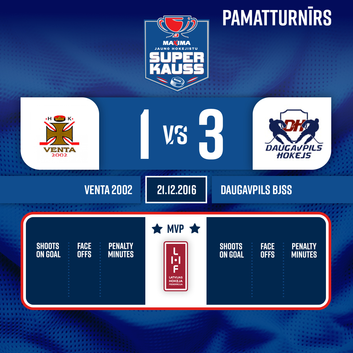 - 60:00P3Goalkeeper out#37 Jegors LOGINOVS