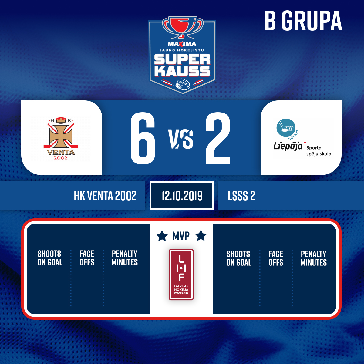 - 14:14P1Powerplay goal#85 Filips Emīls KRŪMIŅŠAssist: #29 Valters ĻIPOVSKIS+1 vairākumā