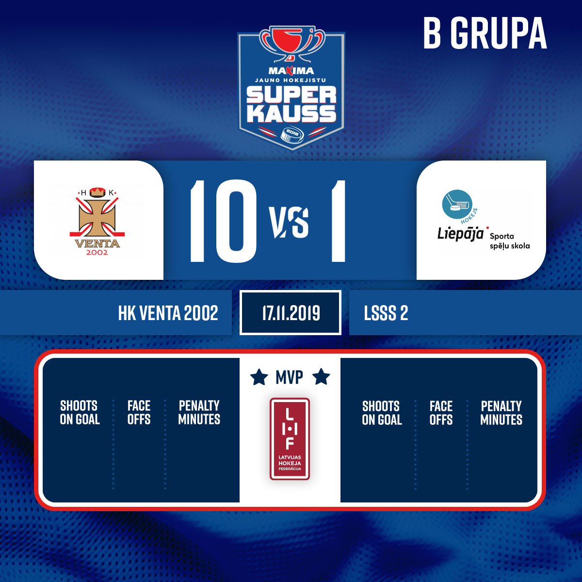 - 33:14P3Goal#8 Kristians Emīls NILLEAssists: #26 Rolands MEDVEDSKIS, #38 Gustavs ĀBELIS