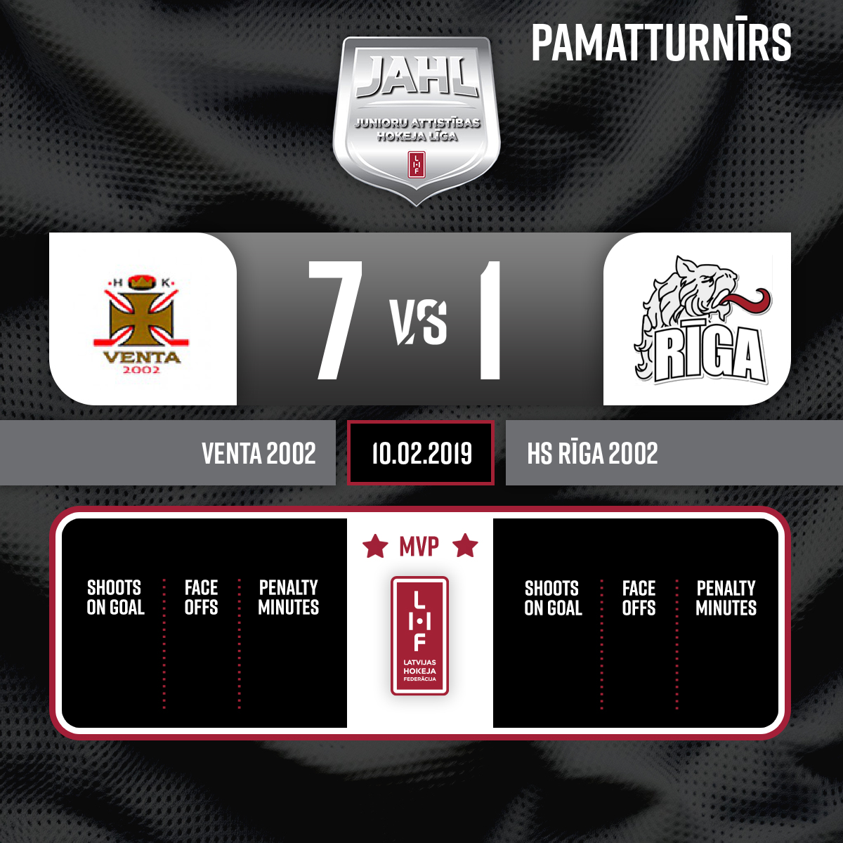- 52:30P3Goal#9 Savva SIČEVSAssists: #16 Ņikita SISKOVS, #48 Ģirts SILKALNS