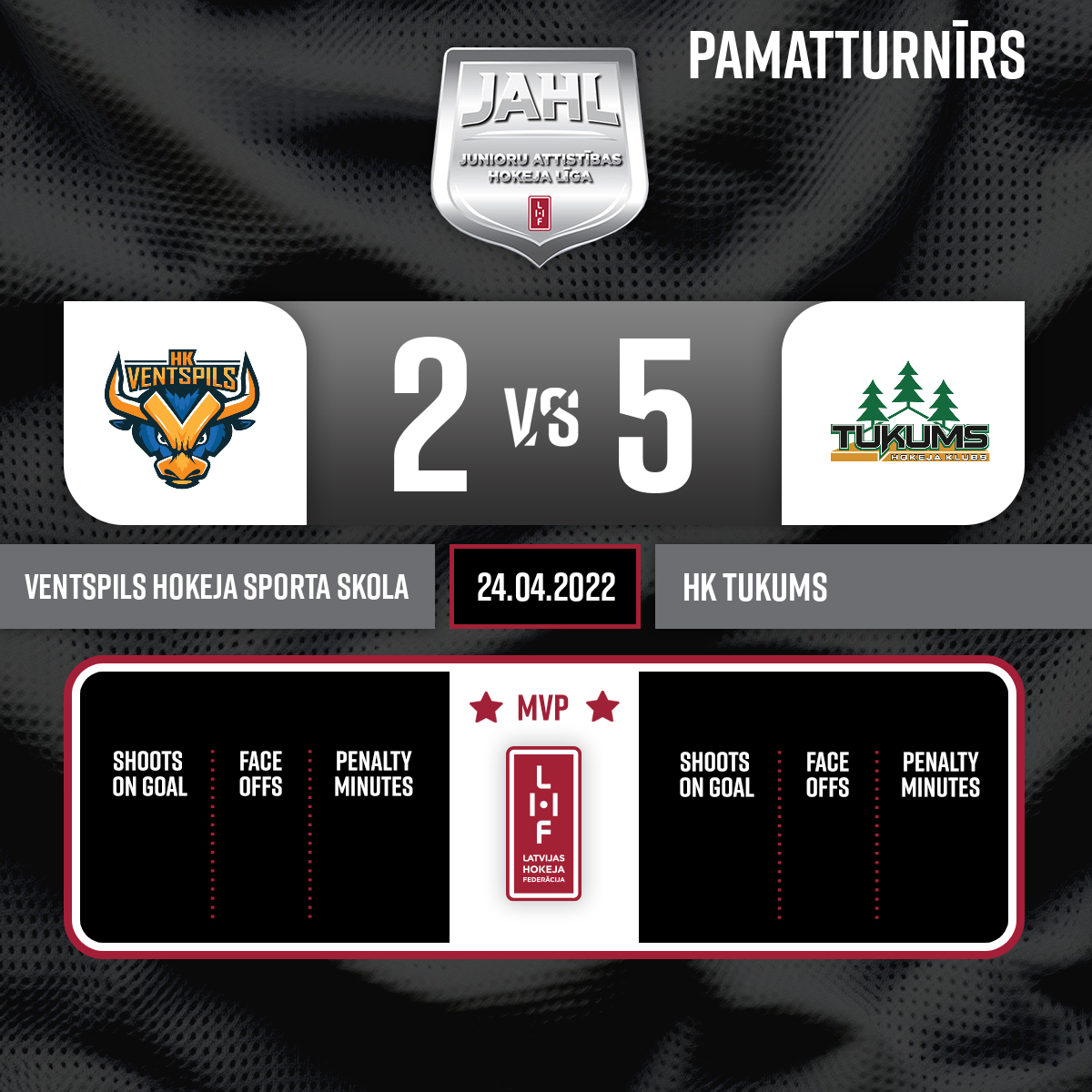 - 36:40P2Powerplay goal#13 Mārtiņš ŠULCSAssists: #10 Edgars CGOJEVS, #53 Ģirts SILKALNS