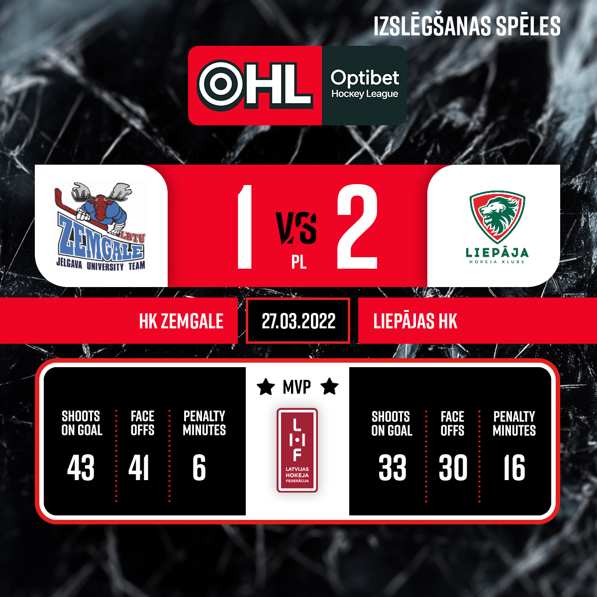 - 75:35OTGoalkeeper out#70 Ēriks VĪTOLS