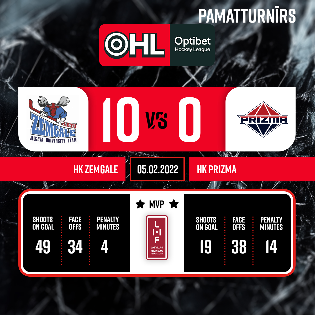 - 60:00P3Spēles labākie spēlētāji - HK Zemgale/LLU- Nr 1 CIMERMANIS Rihards HK Prizma- Nr 17 BORMANIS Kristers