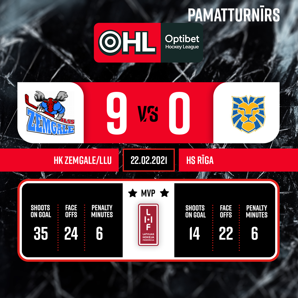 - 40:45P3Goal#14 Frenks RAZGALSAssist: #19 Artūrs HOMJAKOVS