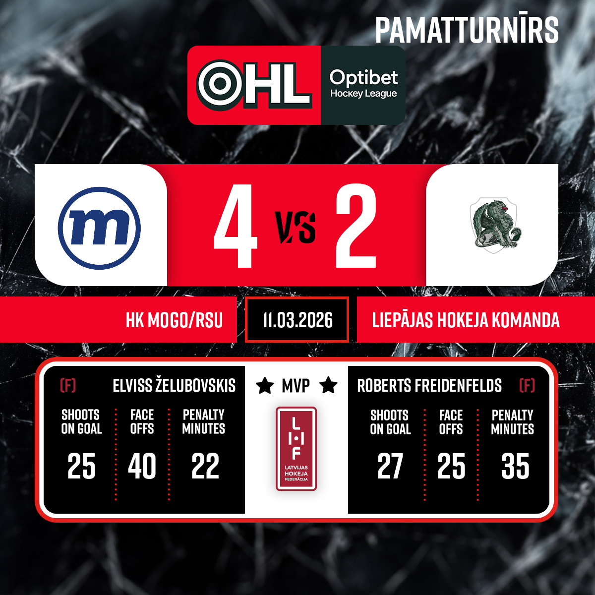 Assists: #69 Kaspars ZIEMIŅŠ, #26 Ernests KRŪMS