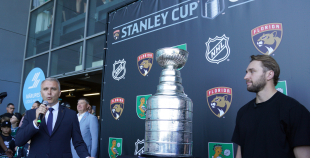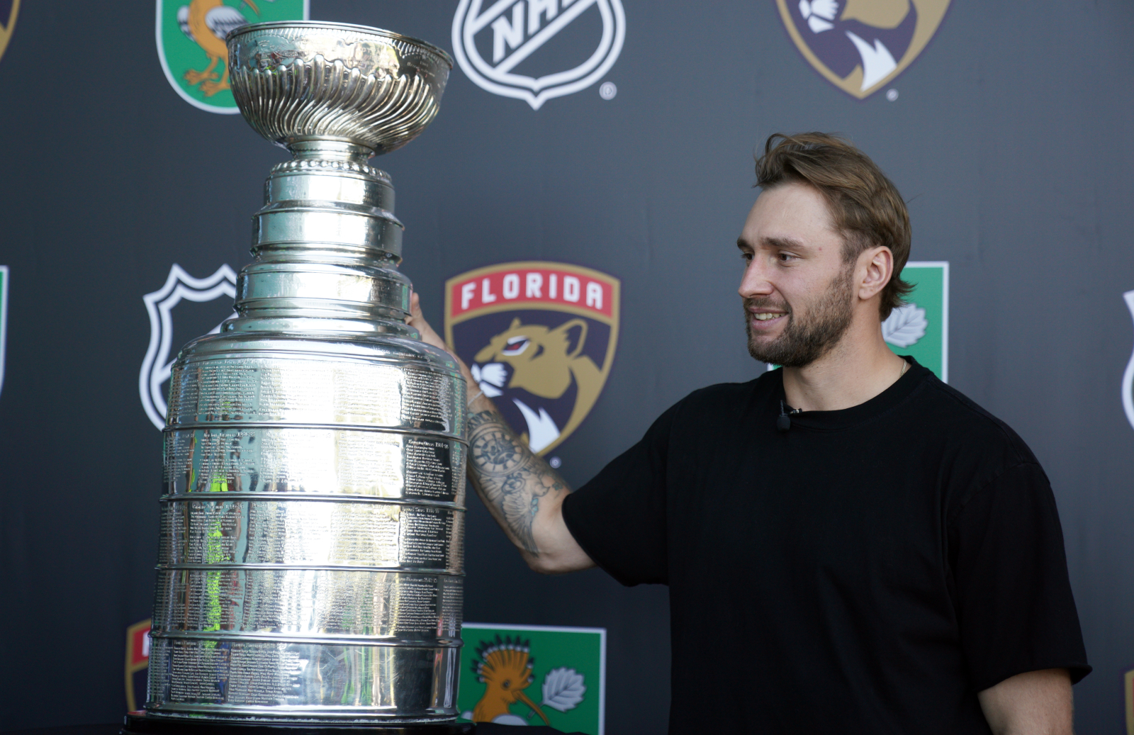 Visitors could not only look at, but also take pictures with the championship cup, whose history began almost 130 years ago. The Stanley Cup is unique in that the names of more than 3,400 hockey players, coaches and team representatives have been engraved on it. The trophy is 89.5 cm high and weighs 15.5 kg.